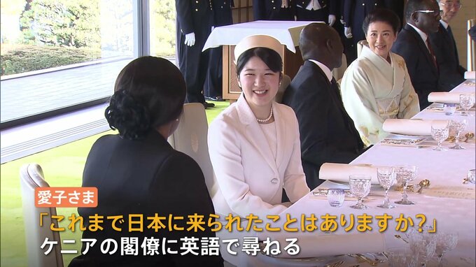 天皇皇后両陛下が主催するケニア大統領夫妻との昼食会に、両陛下の長女・愛子さまが出席されました。外国賓客を招いた宮殿での昼食会に愛子さまが出席されるのは初めてです。きょう午前、両陛下は皇居・宮殿の車寄…