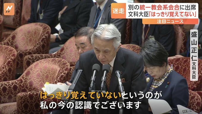 国会で連日、野党が追及している盛山文部科学大臣と旧統一教会の関連団体の関係。きょう、盛山大臣は「はっきり覚えていないというのが今の認識」と答弁しました。立憲民主党 渡辺創 衆院議員「(盛山大臣の)予…