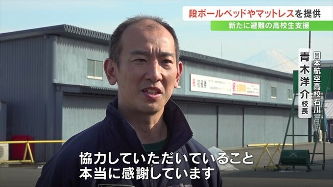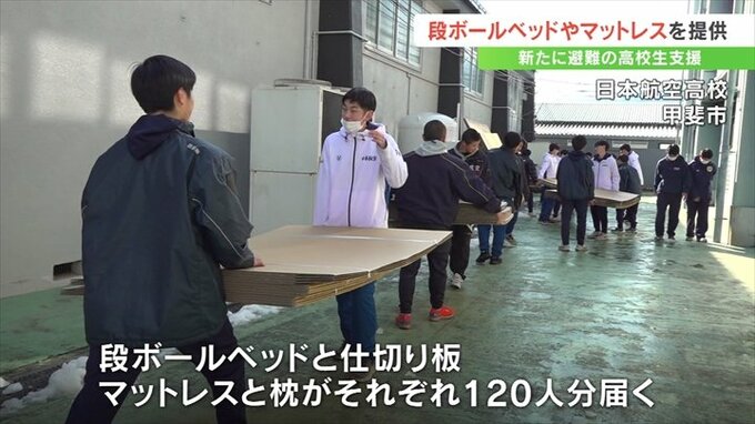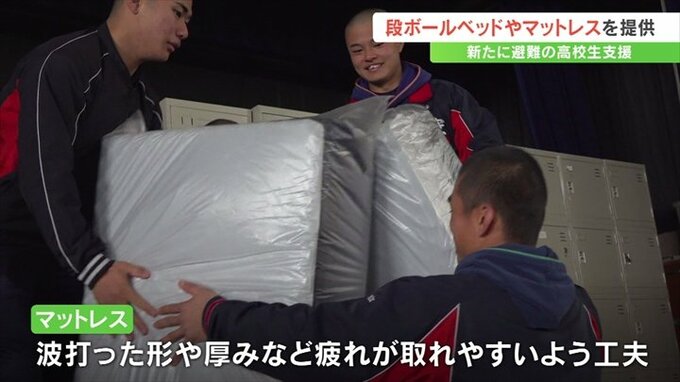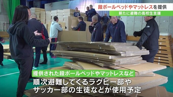 9日に提供された段ボールベッドやマットレスなどは2月以降、順次日本航空高校に避難してくるラグビー部やサッカー部の生徒などが使用することになっています。
