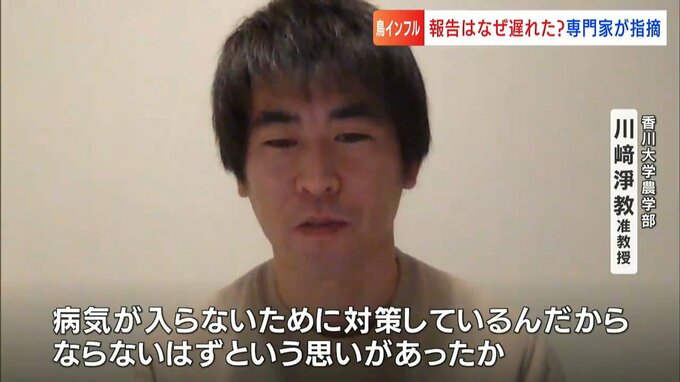 (香川大学農学部 川崎淨教准教授)「これはインフルエンザじゃないだろう、そういう病気が入らないために対策しているんだからならないはずという思いがあったのかなと」