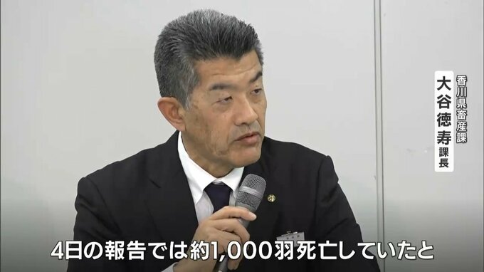 (香川県畜産課 大谷徳寿課長)「4日の報告では、約1000羽死亡してたと。5日の報告ではもっと多かったようです。数えられてはないみたいなんですが」