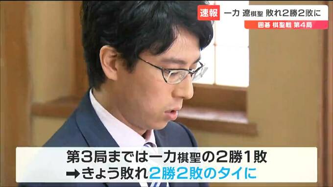 棋聖戦3連覇がかかる仙台市出身の一力遼棋聖が敗れ、対戦成績は2勝2敗となりました。