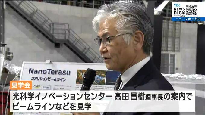 ナノテラスの整備・運営を行う光科学イノベーションセンターの高田昌樹理事長の案内で、放射光を取り入れて様々な物質の測定を行うビームラインなどを見学しました。