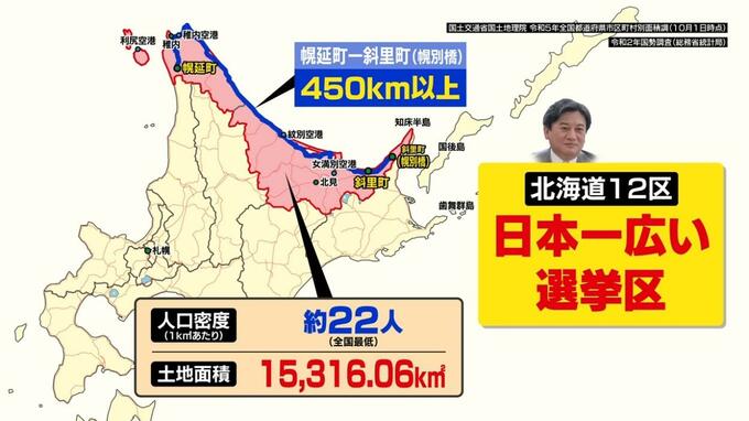密着取材を受け入れてくれたのは自民党衆議院議員の武部新氏。当選4回。小泉内閣の幹事長で“偉大なるイエスマン”を自称した武部勤氏を父に持つ。父から受け継いだ地盤は北海道12区。ここは稚内、利尻島から知床半島に及ぶ“日本一広い選挙区”だ。