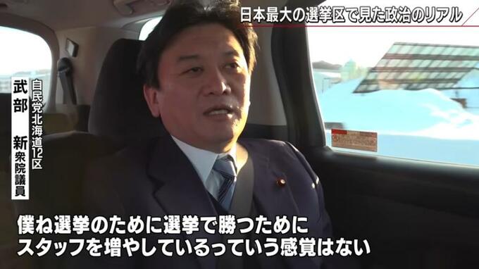 武部氏は秘書12人を抱えるが、東京には政策秘書と私設秘書1人の2人だけ。北海道エリア(札幌と選挙区)には5か所に事務所を構え、2人の公設秘書と8人の私設秘書の計10人の秘書を置いている。天候などに左右されることも多く、スケジュールを組むのは大変。5か所の事務所の秘書たちが複雑なオペレーションをこなしているからこそ何とかなるという。