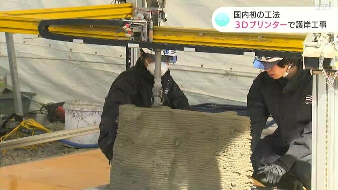 3Dプリンターを使った国内初の工法で仁淀川の護岸工事が行われています。9日は見学会が開かれ自治体や建設業者の担当者が最先端の工法に触れました。高知県土佐市中島の仁淀川では国の発注を受けた高知市の福留開…