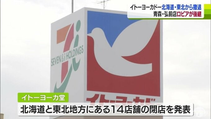 「小さいときからあるので…思い出が1個減って悲しい…」“イトヨ―”の愛称で親しまれ… 半世紀近く営業の店舗も撤退で衝撃広がる 北海道と東北から全撤退の『イトーヨーカドー』 後継の「ロピア」には強い期待の声 青森テレビ 2024年2月9日(金) 21:03 国内 セブン&アイ・ホールディングスは、イトーヨーカ堂が北海道と東北から撤退すると発表しました。 青森県内のイトーヨーカドー青森店と弘前店はOICグループの食品スーパー「ロピア」が後継テナントとなります。