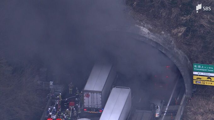 警察によりますと、火は大型トラックと積んでいた車5台を焼失、また消防によりますと、トンネル内は黒煙がひどく充満していて、トンネル内への進入が難しく消火活動は難航していましたが、出火から約4時間に消し止められました。この火災でトラックを運転していた大阪府和泉市の男性会社員(48)が軽いやけどをしました。