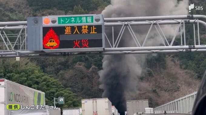 2月9日午後、静岡市葵区の新東名高速でトンネル火災があり、大型トラックと積載していた車5台の計6台を焼き、約4時間後に消し止められました。この火災の影響で、新清水JCT~新静岡ICの上下線で一時通行止めとなりましたが、10日午前7時、約15時間ぶりに解除されました。