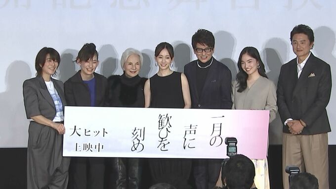俳優の前田敦子さん、カルーセル麻紀さん、哀川翔さん、片岡礼子さん、原田龍二さん、松本妃代さん、三島有紀子監督が、映画「一月の声に歓びを刻め」の公開記念舞台挨拶に登壇しました。