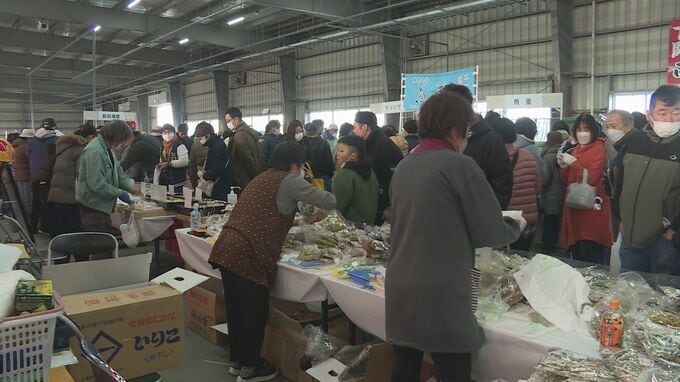 市場内では、フグや水産加工品が日頃より安く販売され、こちらも人気を集めていました。