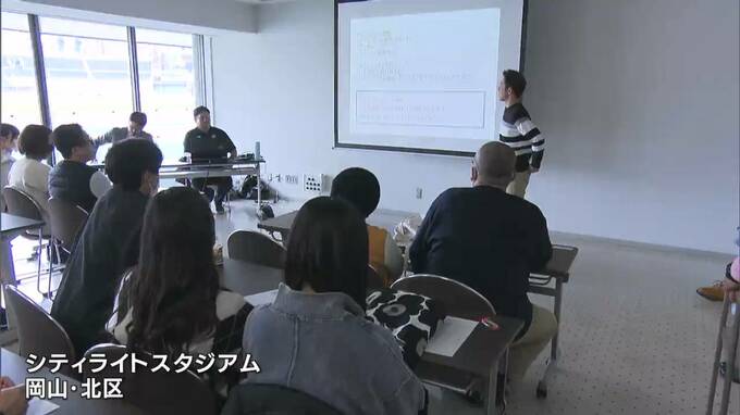 サッカーJ2・ファジアーノ岡山のホームゲームの運営をサポートするボランティアスタッフの説明会が開かれました。(ボランティア経験者)「笑顔でお迎えして気持ちいい試合を見てもらう」シティライトスタジアムで…