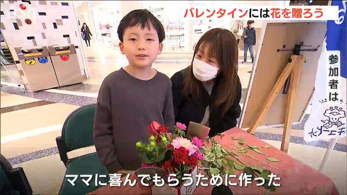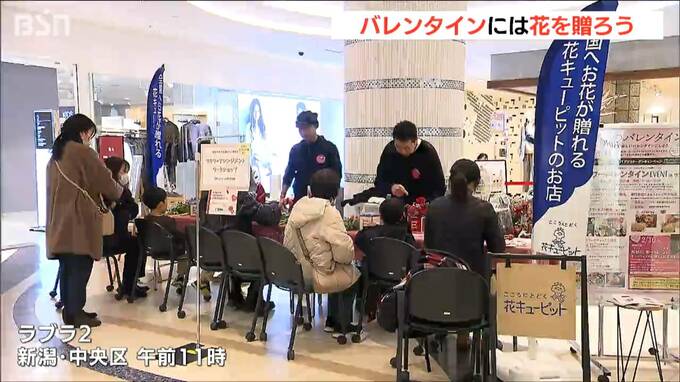 11日、バレンタインに花を贈る文化を広めようと新潟市の商業施設で花にまつわるイベントが開かれ、家族連れなどで賑わいました。