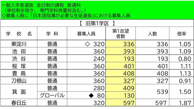 【2月最新】大阪府公立高校入試2024 北野1.48倍、茨木1.96倍、天王寺1.2倍 公立高校希望者は59%で6割切る【令和6年度高校受験 進路希望調査】 毎日放送 2024年2月14日(水) 12:49 国内 学校別の倍率 旧第1学区 春日丘1.87倍 山田1.68倍