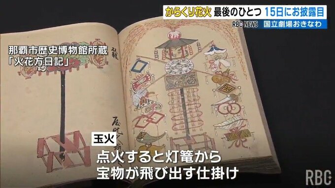 琉球王国時代、中国の冊封使(さっぽうし)に披露されていた「からくり花火」が、今月15日に浦添市の国立劇場おきなわで再現されます。