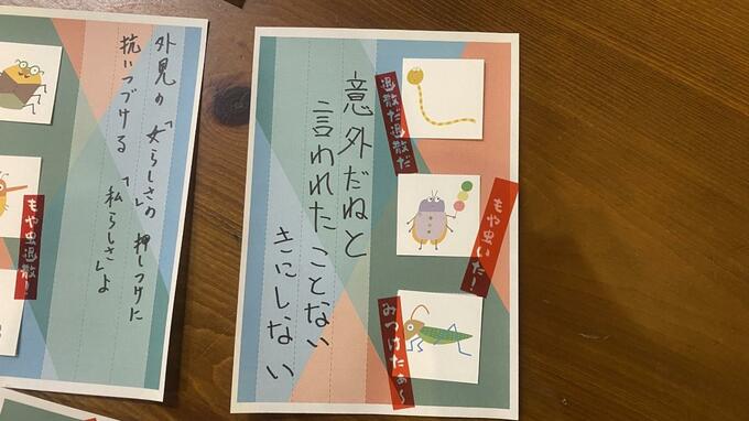 さらにこの日は、相談室の開催に合わせて、ワークショップも開かれました。「ジェンダーもやもや発見カード」というゲーム感覚のワークショップです。このカードは、川崎市の市民団体「ジェンクロス・カワサキ」と川崎市男女共同参画センターが協働で作りました。 例えば「結婚いつなの?」「子どもはいつ?」など、言われたらもやっとする言葉が、「ジェンダーもや虫」という虫のイラストと共に描かれていて、引いたカードの言葉について、参加者同士で実体験や考え方を語ります。最後には、ワークショップを通じて考えたことについて一人一句、川柳を発表しました。参加者の一人、「なにかし堂」の常連の中学三年生の女の子が考えた川柳です。