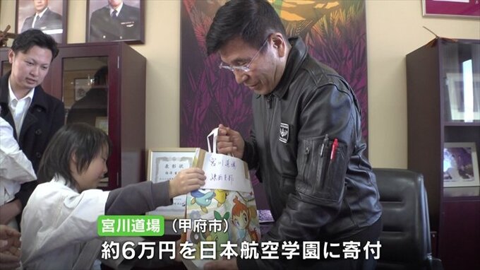 一方、甲府市に本部を置く空手の宮川道場が日本航空学園に約6万円を寄付しました。