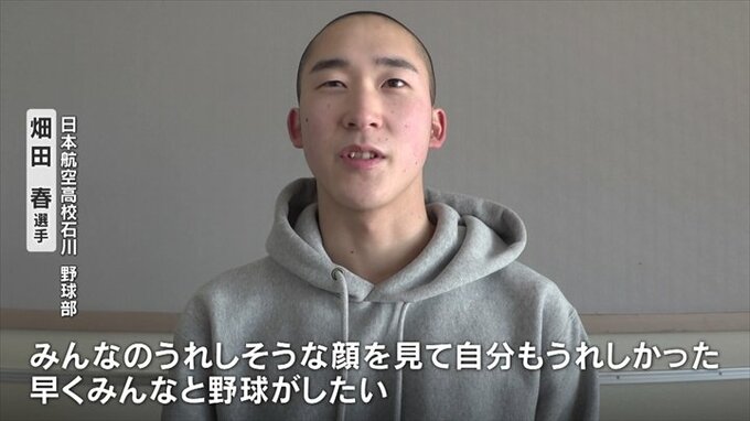 「みんなの嬉しそうな顔を見て自分も嬉しかった。早くみんなと野球がしたい」