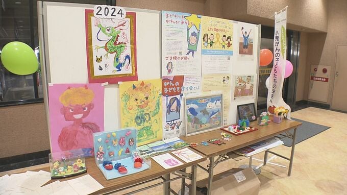パネル展は小児がんの子どもの家族などでつくる団体が開いたもので、会場には県内で闘病中の子どもたちが描いた絵や工作などの作品が展示されました。
