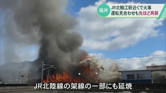 12日午前、福井県鯖江市の北鯖江駅付近で住宅兼作業場が燃える火事がありました。この火事により福井・敦賀間の上下線で運転見合わせが続いていたJR北陸線は、先ほど運転を再開しました。12日午前11時15分ごろ、福…
