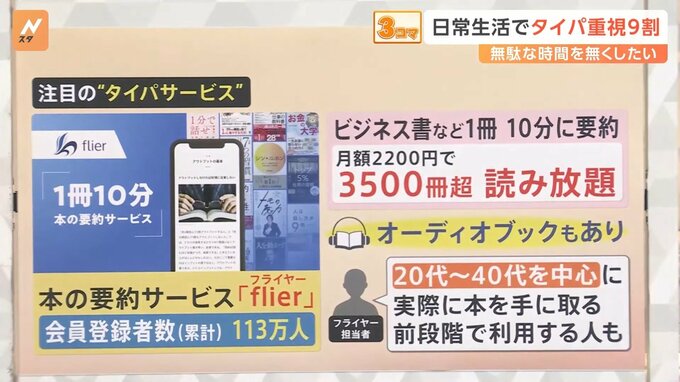 さらにタイパに関しては、注目のサービスも登場しています。本の要約サービス「flier」(フライヤー)です。