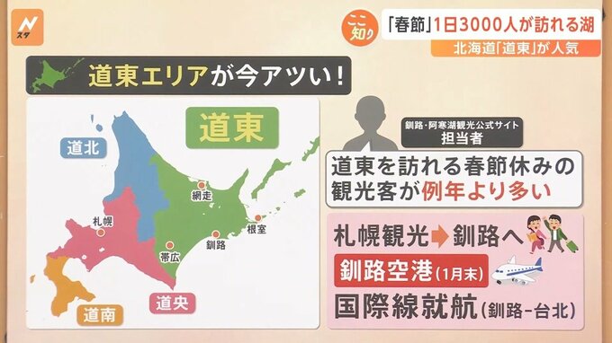 そうなんですよ。どうしてもやっぱり札幌(道央)や函館(道南)に行く方のほうが多いかなという印象ですが、釧路・阿寒湖観光公式サイトの担当者いわく「道東を訪れる春節休みの観光客が例年より多い」とのこと。