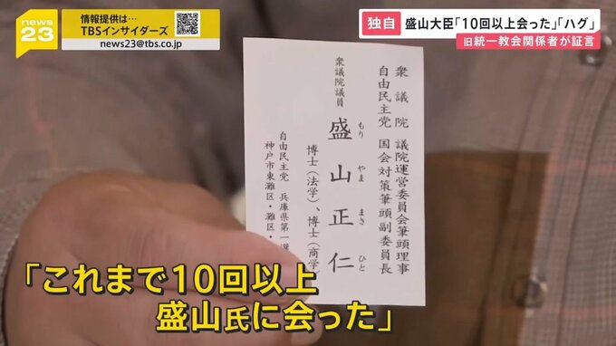 「これまで10回以上は盛山大臣に会っている」 旧統一教会関係者が証言