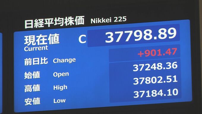 きょうも日経平均株価は大きく値上がりしています。午前の終値は結局、先週末に比べて901円値上がりし3万7798円となりました。取引時間中としては2営業日連続で1990年2月のバブル期以来、34年ぶりの高値を更新しま…