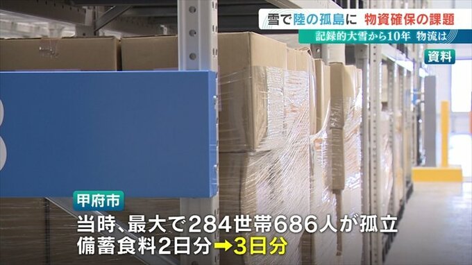 大雪を教訓に最大で284世帯、686人が孤立した甲府市は備蓄食料を2日分から3日分に増やしました。