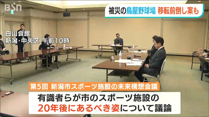 新潟市のスポーツ施設の今後の在り方について検討する会議が13日、開かれ、地震の被害が大きかった鳥屋野球場について移転の計画を前倒しする必要性が示されました。