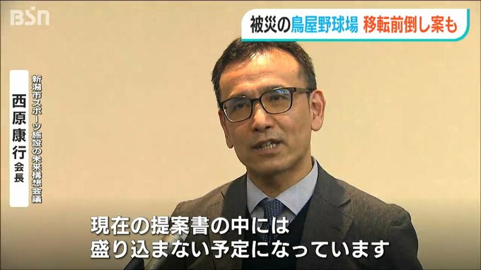 【新潟市スポーツ施設の未来構想会議 西原康行 会長】「今回はあくまでも20年後の想定ということですけど、もちろんそれ(鳥屋野球場の移転)にむけて前倒しすることは考えられると思いますけど、現在の提案書の中には盛り込まない予定になっています」