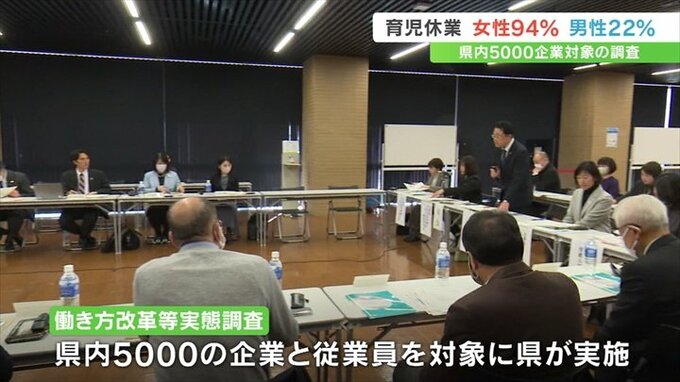 調査は県が人口減少対策につなげようと、県内5000の企業とその従業員を対象に初めて行ったもので、13日に開かれた女性活躍推進ネットワーク会議で中間報告が発表されました。
