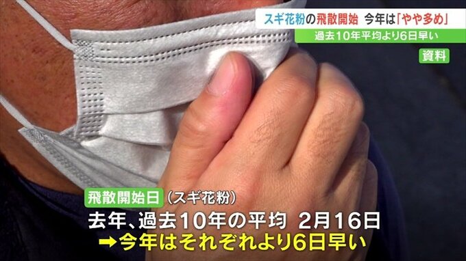 飛散開始日は2023年と過去10年の平均がともに2月16日で、2024年はそれに比べ6日早いということです。
