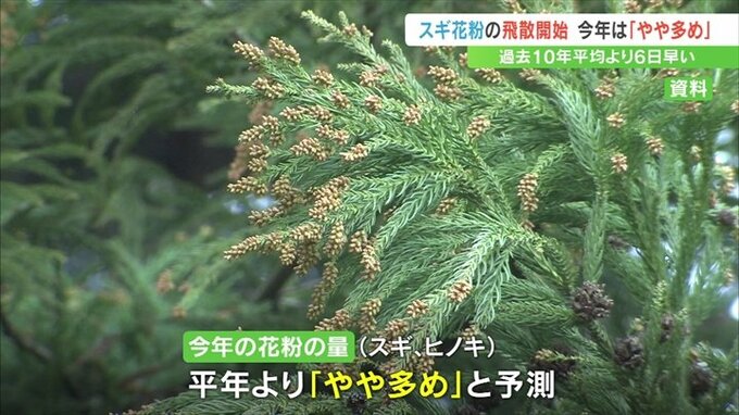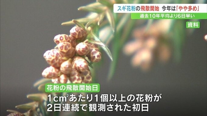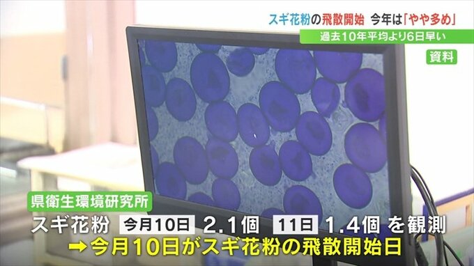 県の衛生環境研究所は2月10日に2.1個、翌日の11日に1.4個のスギ花粉を観測したため、2月10日がスギ花粉の飛散開始日と発表しました。
