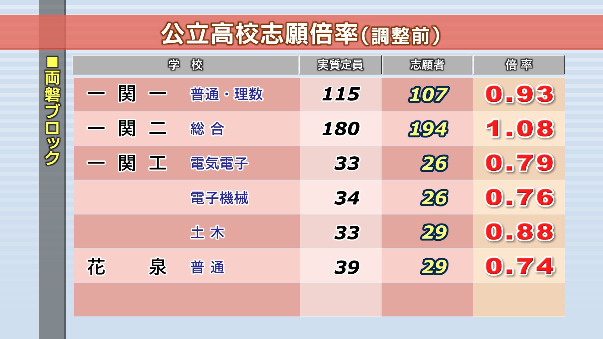 岩手県公立高校入試2024 調整前志願倍率 最高は不来方(人文・理数)の1.57倍 盛岡一1.13倍 平均は0.80倍で過去最低に【全校掲載・ブロックごとに一覧表で】 IBC岩手放送 2024年2月14日(水) 09:49 国内
