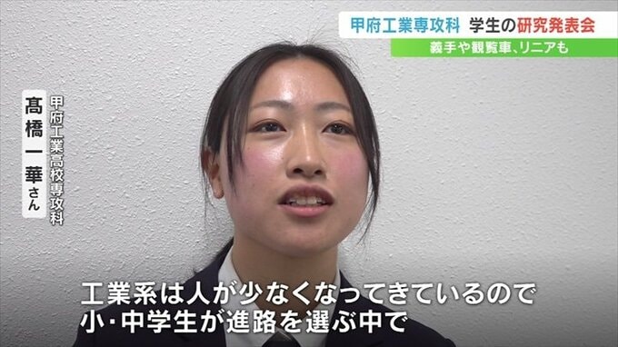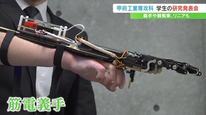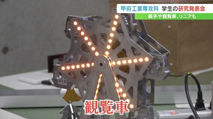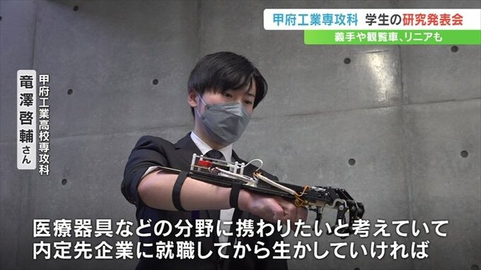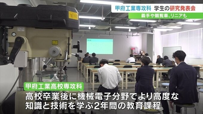 高校卒業後に機械電子などをより専門的に学ぶ甲府工業高校の専攻科の学生が、義手や観覧車など1年間取り組んできた研究成果を発表しました。
