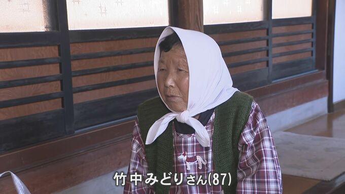 この家に1人で暮らす竹中みどりさん(87)。震災で壁が一部はがれるなどの被害がありましたが、避難所には行かず自宅で生活を続けています。停電は解消されていますが断水は続いていて、ためた山水を生活用水として使っています。