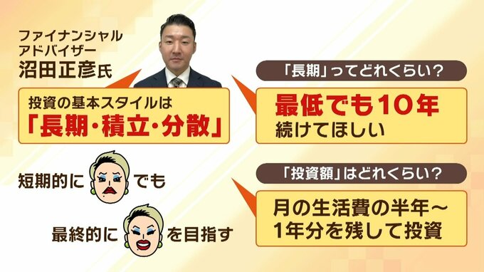 (沼田正彦氏)逆に言うと、短期ではなかなか利益を出すのが難しいので、基本は長期スタンスで見ていただく方がいいと思います。最低でも10年は続けてほしい。一概に言えるものではないんですけれども、過去の実績等見てると、10年ぐらい積み立てを継続している方であれば、損はあまり出ていないかな、というイメージ、あくまで参考となります。