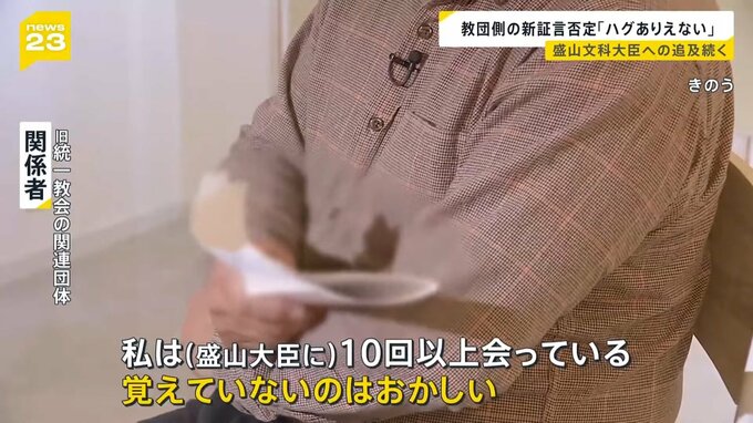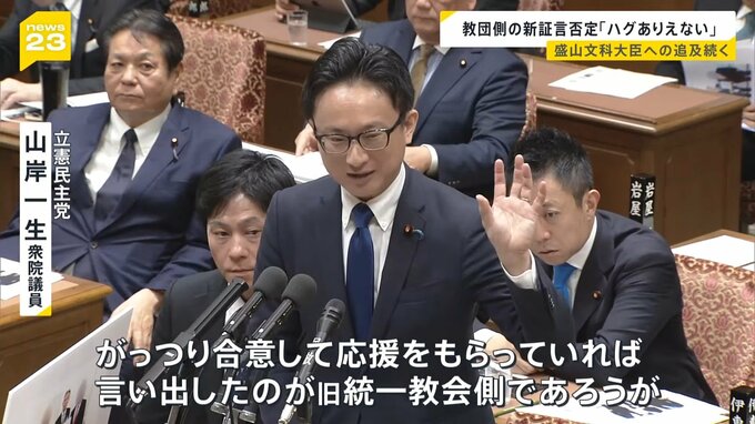 盛山文科大臣への追及続く 教団側の新証言を否定「ハグはありえない」