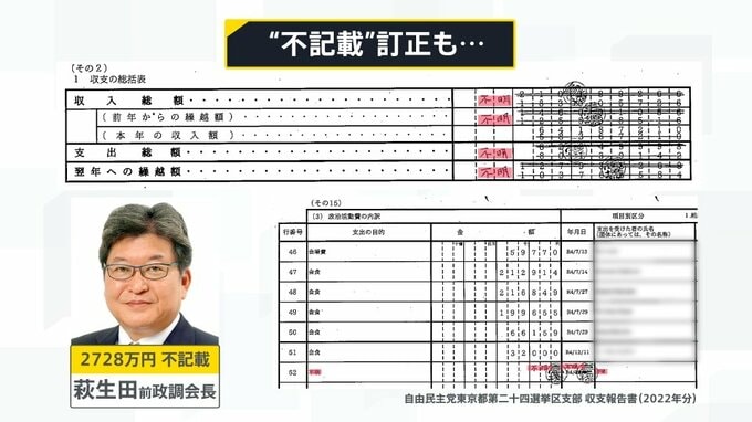 安倍派幹部の萩生田前政調会長も、1度額を書いていますが、訂正・修正して「不明」に直しているという状況です。