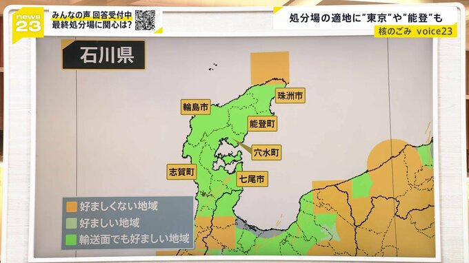 実は政府は、2017年の段階で、最終処分場に適しているかどうかを示す全国的な地図を作っています。その地図によると、立地に好ましいとされている地域は、国の3分の2を占めている。首都圏を見ても、東京都の一部や、神奈川県も好ましい地域とされている。
