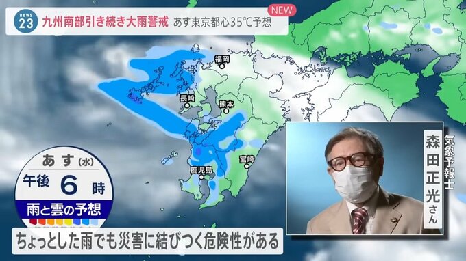 「次々と湿った空気が入り込む形になってますので、九州の方は20日いっぱい、降ったり止んだり。これまでにも▼200ミリ以上降っていますから、ちょっとした雨でも災害に結びつく危険性がある」