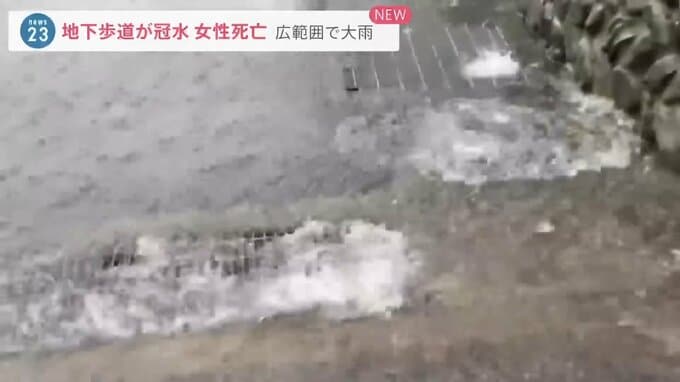19日午後2時半ごろの静岡県・駿河区。叩きつけるように雨が降り、側溝からは水があふれました。