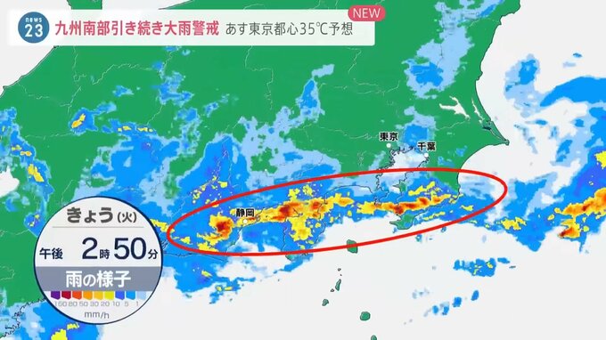「見かけは『線状降水帯』に見えたんですけれども、実は『線状降水帯』というのは、例えば3時間で150ミリ以上降った地点があるとか、いくつかの定義がある。その定義にはまっていなかったので、今回発表は見送られたということなんです。ところが、積乱雲の塊がポンポンとあったわけで、実際、静岡付近では▼80ミリぐらいの雨が降っている。そういう意味では警戒は怠ってはいけないという、そういう状況だったと思います」