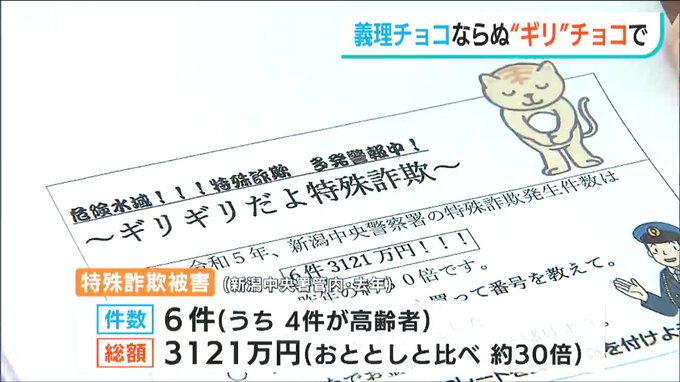 新潟中央署管内では去年特殊詐欺の被害額が激増。6件で3000万円余りが騙し取られ被害総額はおよそ30倍となりました。