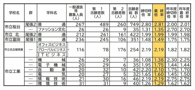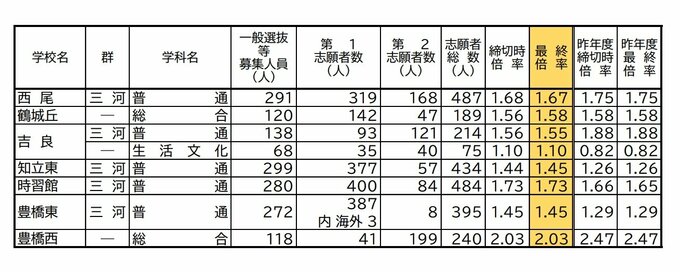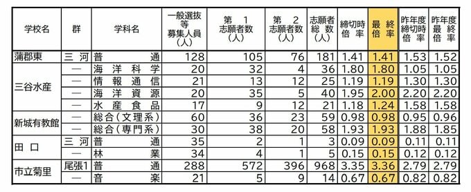 愛知県公立高校入試2024 出願状況 全日制普通科は菊里3.36倍 安城3.30倍 瑞陵3.27倍 旭丘1.67倍 岡崎1.50倍 志願倍率【確定版】 CBCテレビ 2024年2月15日(木) 22:41 国内
