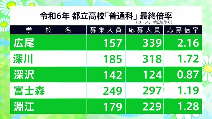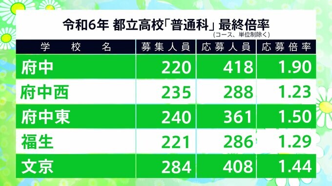 都立高校入試2024 最終志願倍率は日比谷1.81倍、西1.70倍、国立1.56倍に【令和6年度高校受験 進路希望調査】 TBSテレビ 2024年2月14日(水) 19:02 国内 学校別の一覧 日比谷1.81倍、広尾2.16倍