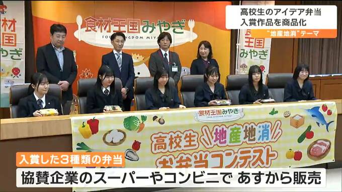 「地産地消」をテーマにした高校生によるアイデア弁当コンテストの入賞作品がお披露目されました。宮城県産の食材がふんだんに使われていて、15日から県内のスーパーやコンビニで販売されます。