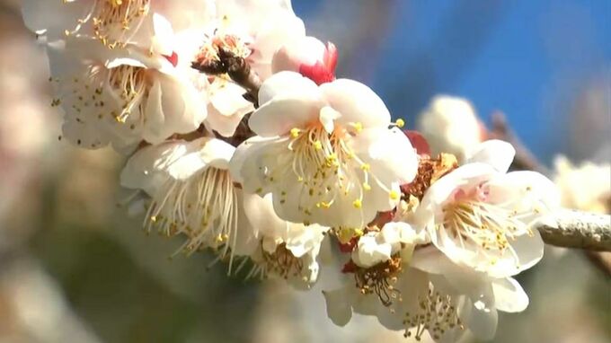 静岡県内は2月14日、春本番を思わせる陽気となり、季節外れの暖かな一日となりました。静岡市の梅園では例年よりも早く梅が咲き始め、春の訪れを告げています。<坂口将也記者>「午後1時前、静岡市の駿府城公園で…