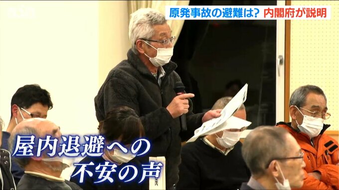 原子力防災に関する住民説明会が14日夜、新潟県 柏崎市で開かれ、内閣府が原発事故が起きた際の避難計画について、「海路の避難や空路での避難が難しい場合は屋内退避を継続する」と説明しました。この説明会は原…